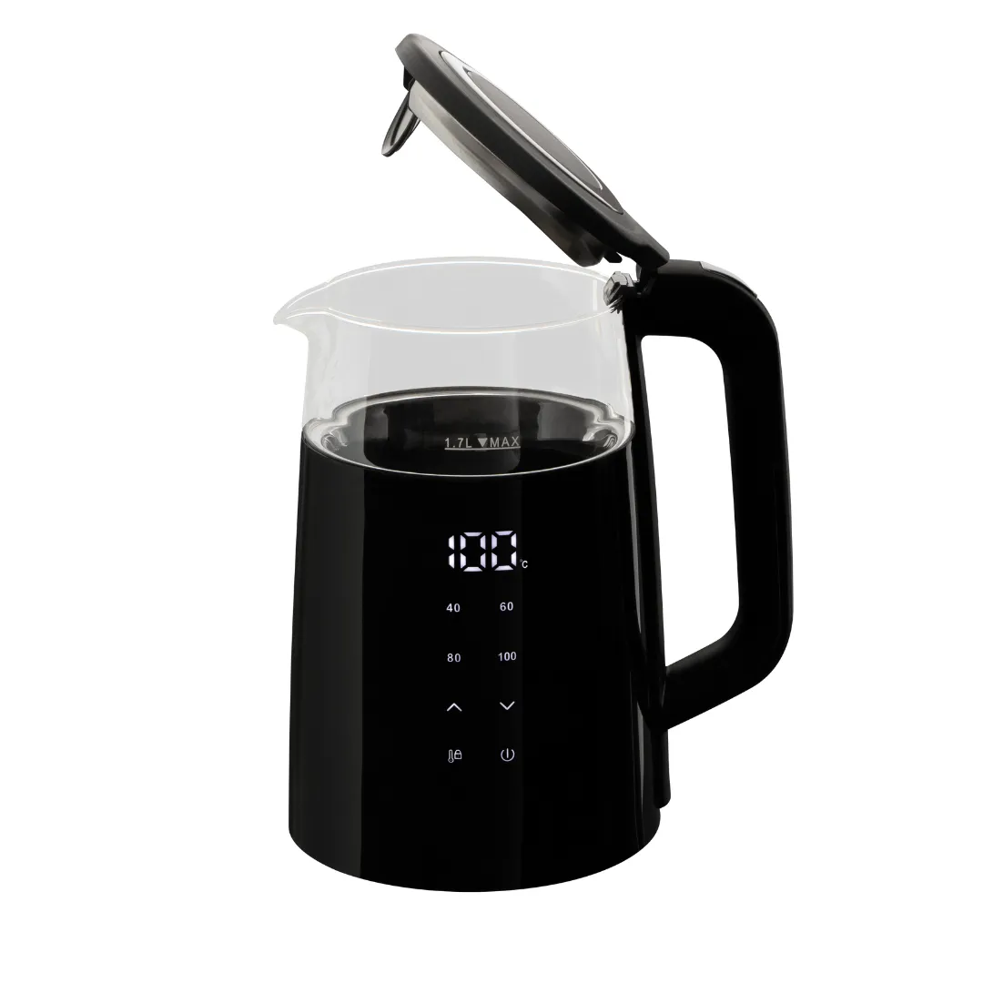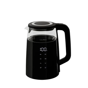 Wykonany z trwałego szkła borokrzemowego i plastiku, czajnik nie tylko prezentuje się nowocześnie, ale również zapewnia wysoką odporność na plamy i zmiany temperatury. Cyfrowy ekran z białymi znakami umożliwia precyzyjne ustawienie jednej z czterech predefiniowanych temperatur (40°C, 60°C, 80°C, 100°C) – idealnych do różnych rodzajów herbat i kaw.