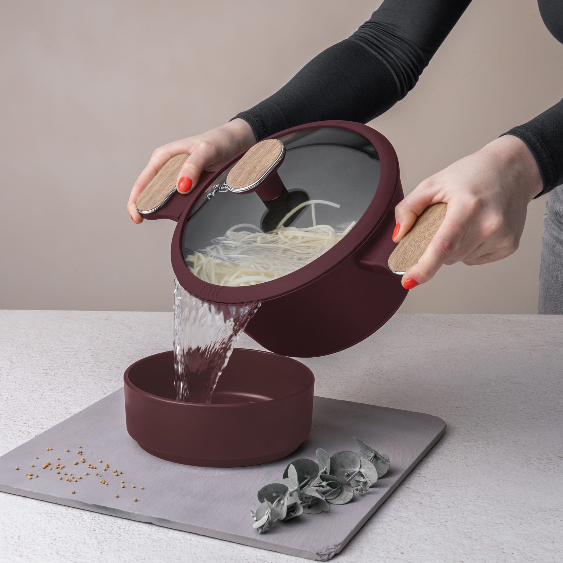 umożliwiająca precyzyjne i wygodne odcedzanie płynów bez konieczności używania dodatkowych sit czy durszlaków.