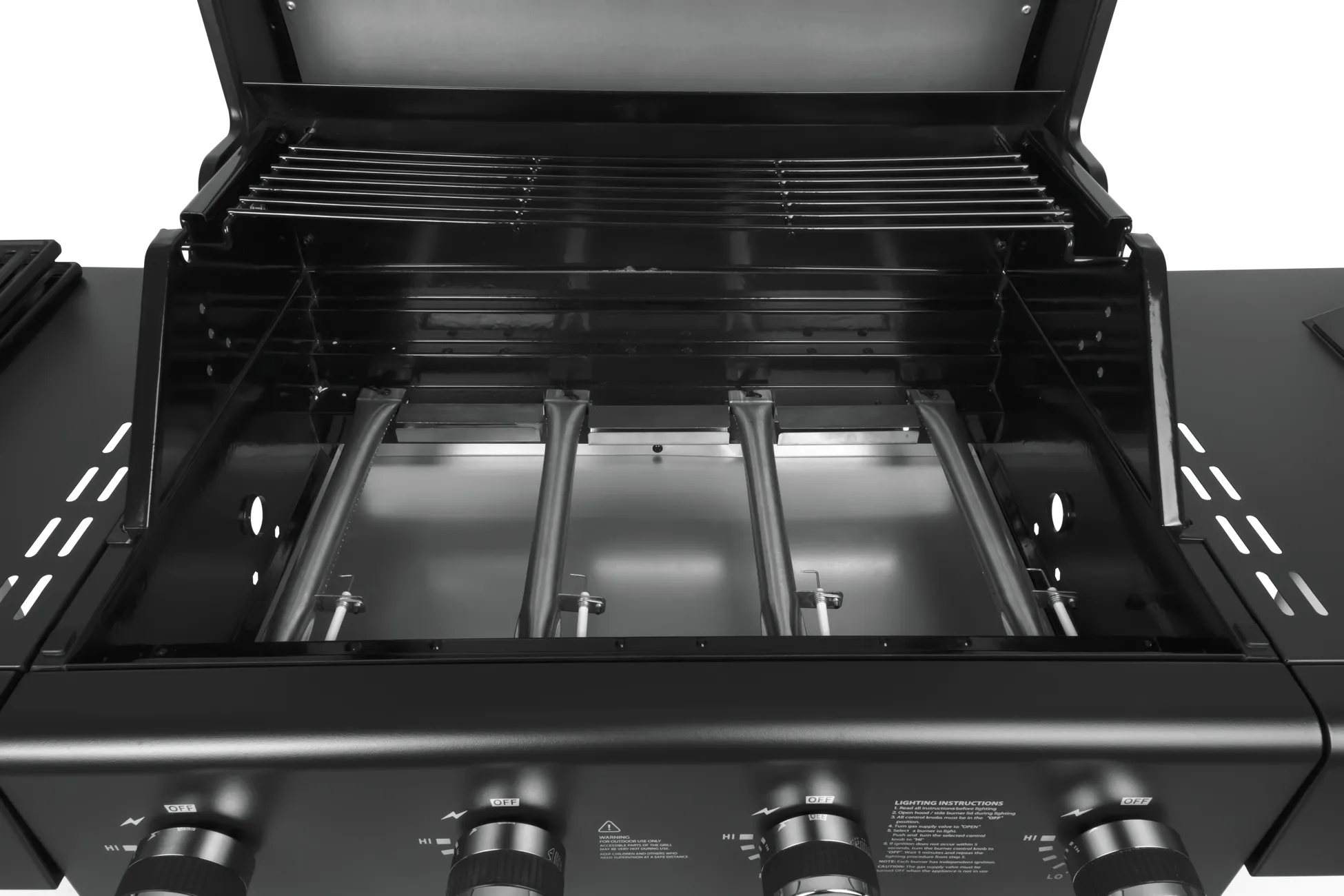 4 palniki gazowe o mocy 2,2 kW każdy – równomierne i szybkie nagrzewanie, idealne do różnorodnych technik grillowania.