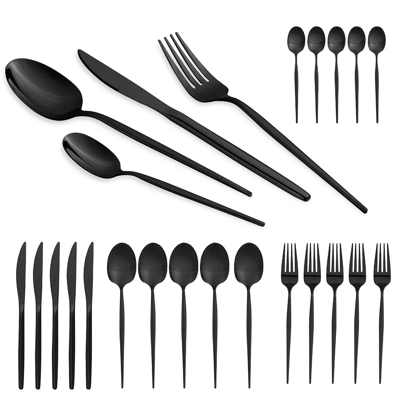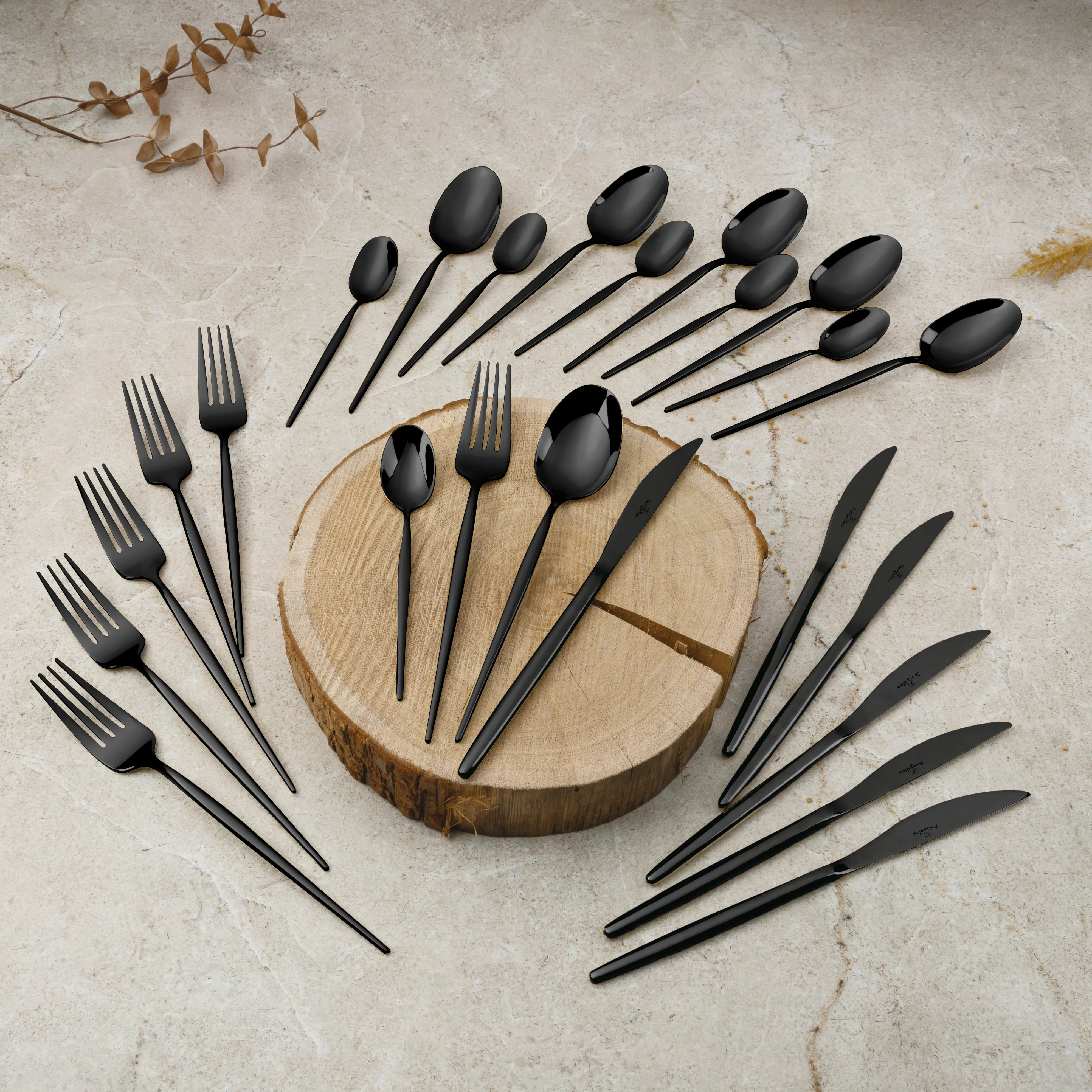 Komplet czarnych sztućców 24-elementy lustrzane BerlingerHaus