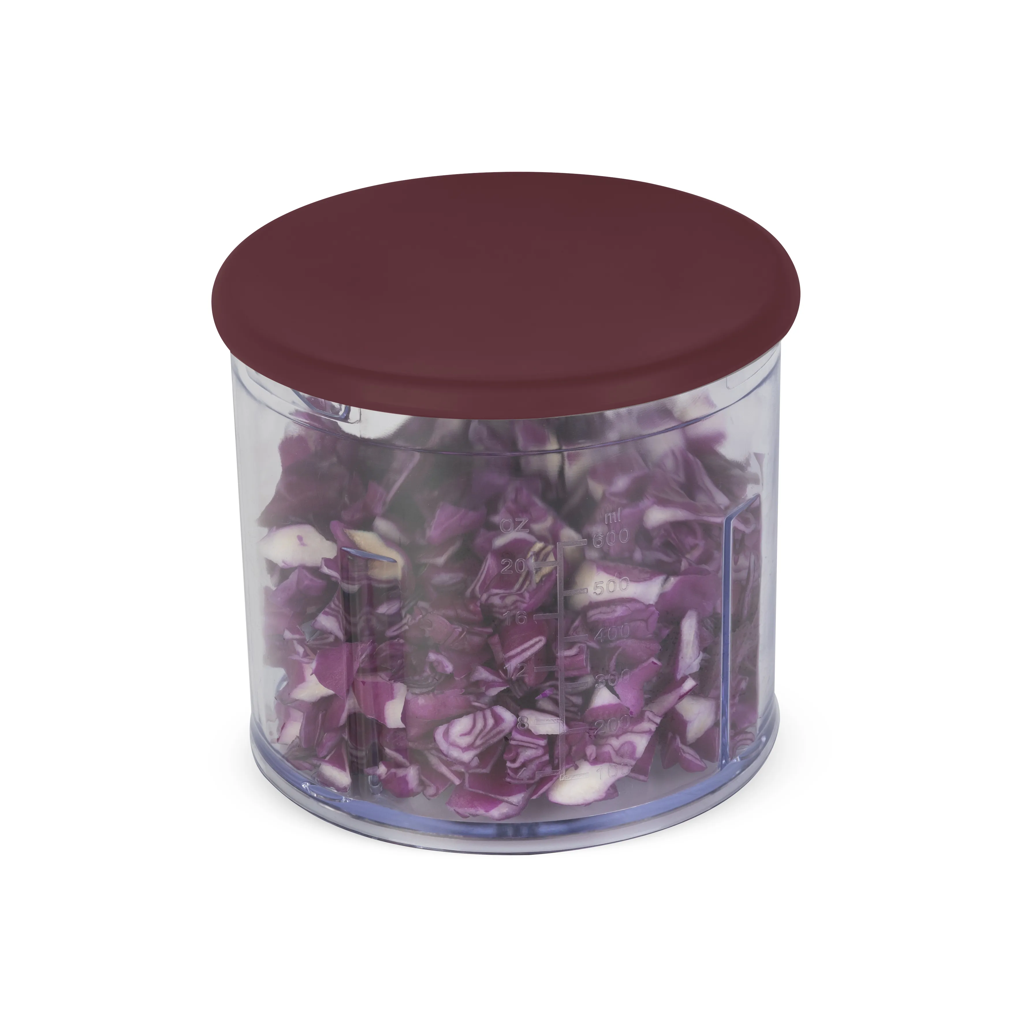 Kompaktowa, plastikowa misa o pojemności 0,6 litra doskonale sprawdza się przy przygotowaniu niewielkich porcji – bez marnowania składników i miejsca. - Funkcja 2 w 1 – siekaj i przechowuj