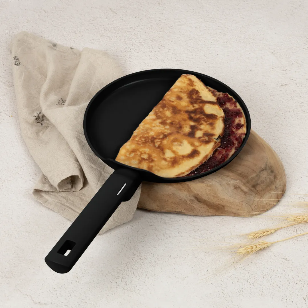Patelnia do naleśników BerlingerHaus BH-8152 – Matte Black Collection to idealne narzędzie dla miłośników śniadań i lekkich dań, którzy nie chcą iść na kompromis między jakością a designem. Wykonana z solidnego odlewanego aluminium i pokryta innowacyjną, 3-warstwową powłoką titanPro, zapewnia idealnie gładką powierzchnię do smażenia bez przywierania – nawet przy minimalnym użyciu tłuszczu.