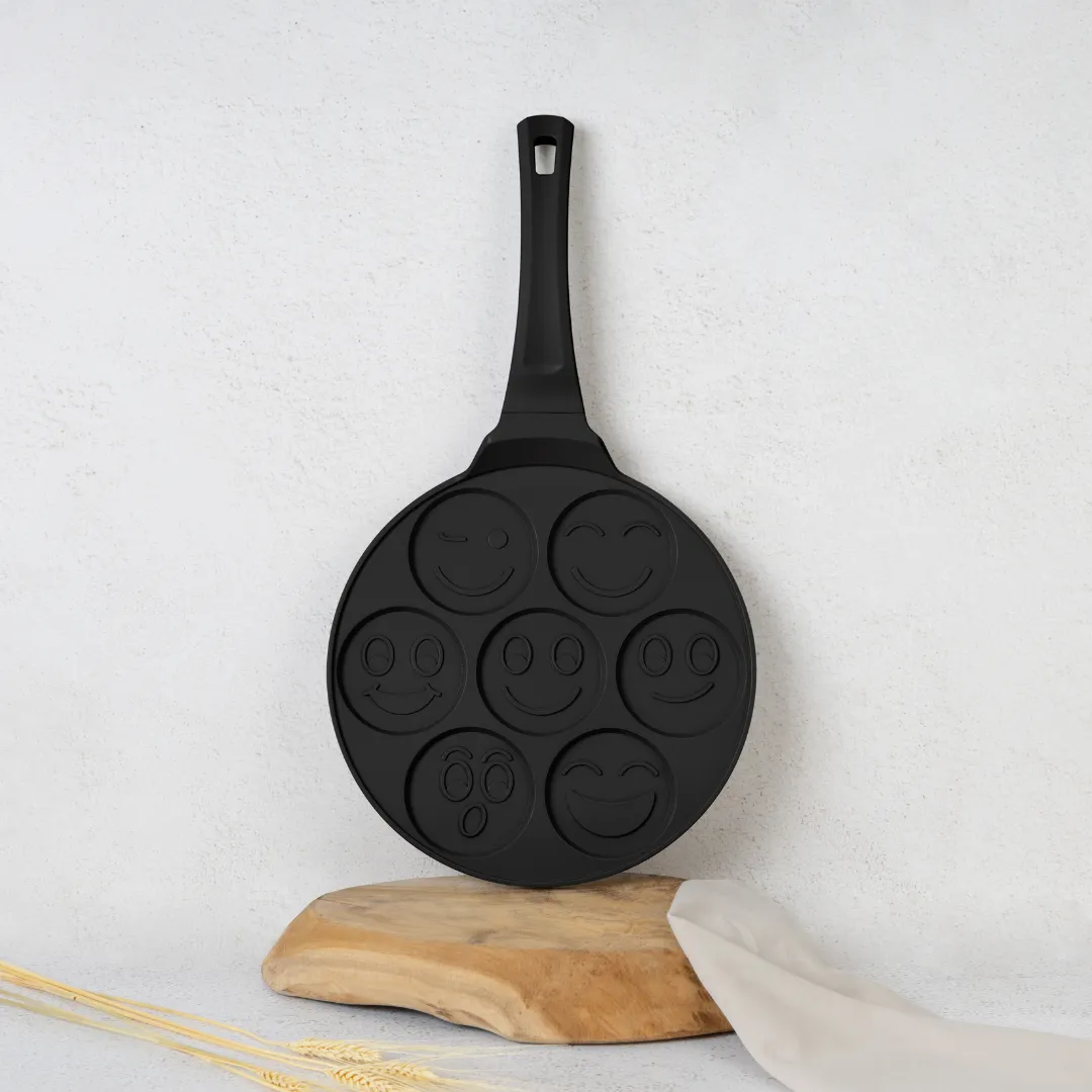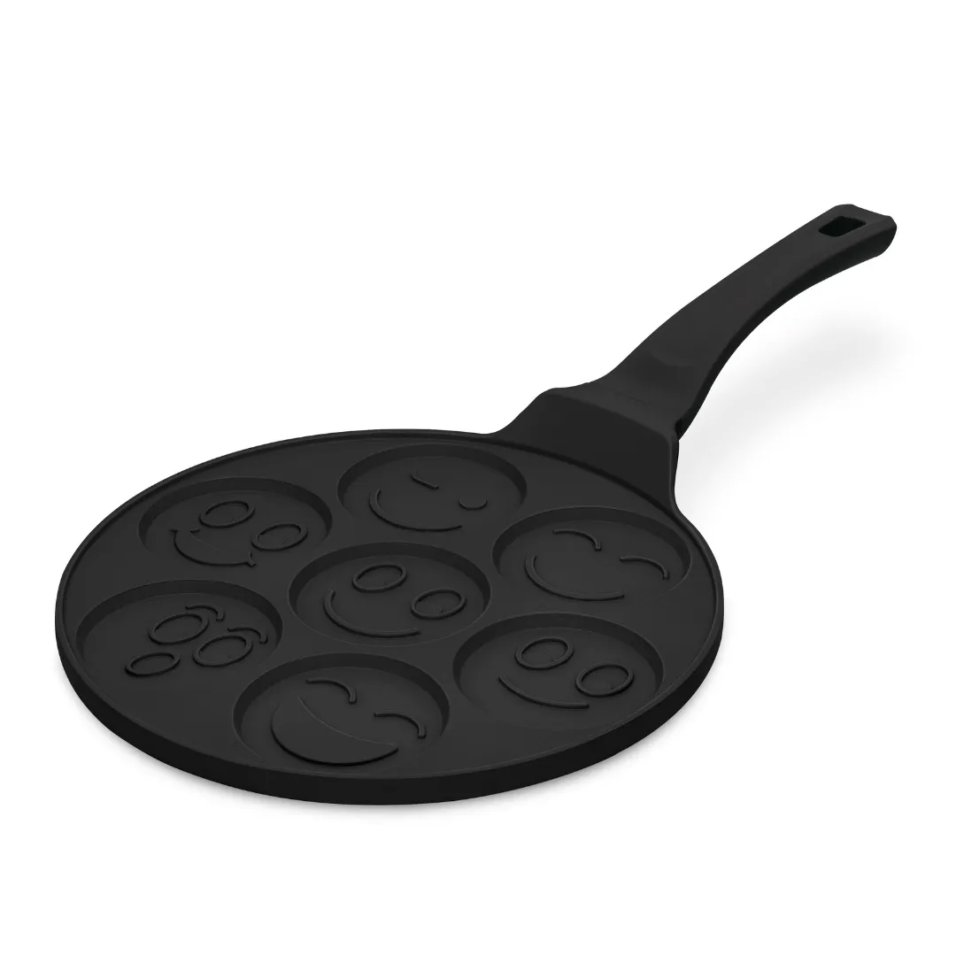 Zamień codzienne naleśniki w zabawne i urocze śniadanie dzięki patelni BerlingerHaus BH-7791 z 7 otworami w kształcie różnych emoji. Idealna do przygotowania puszystych pancakes, jajek czy placków w nietypowej, uśmiechniętej formie!