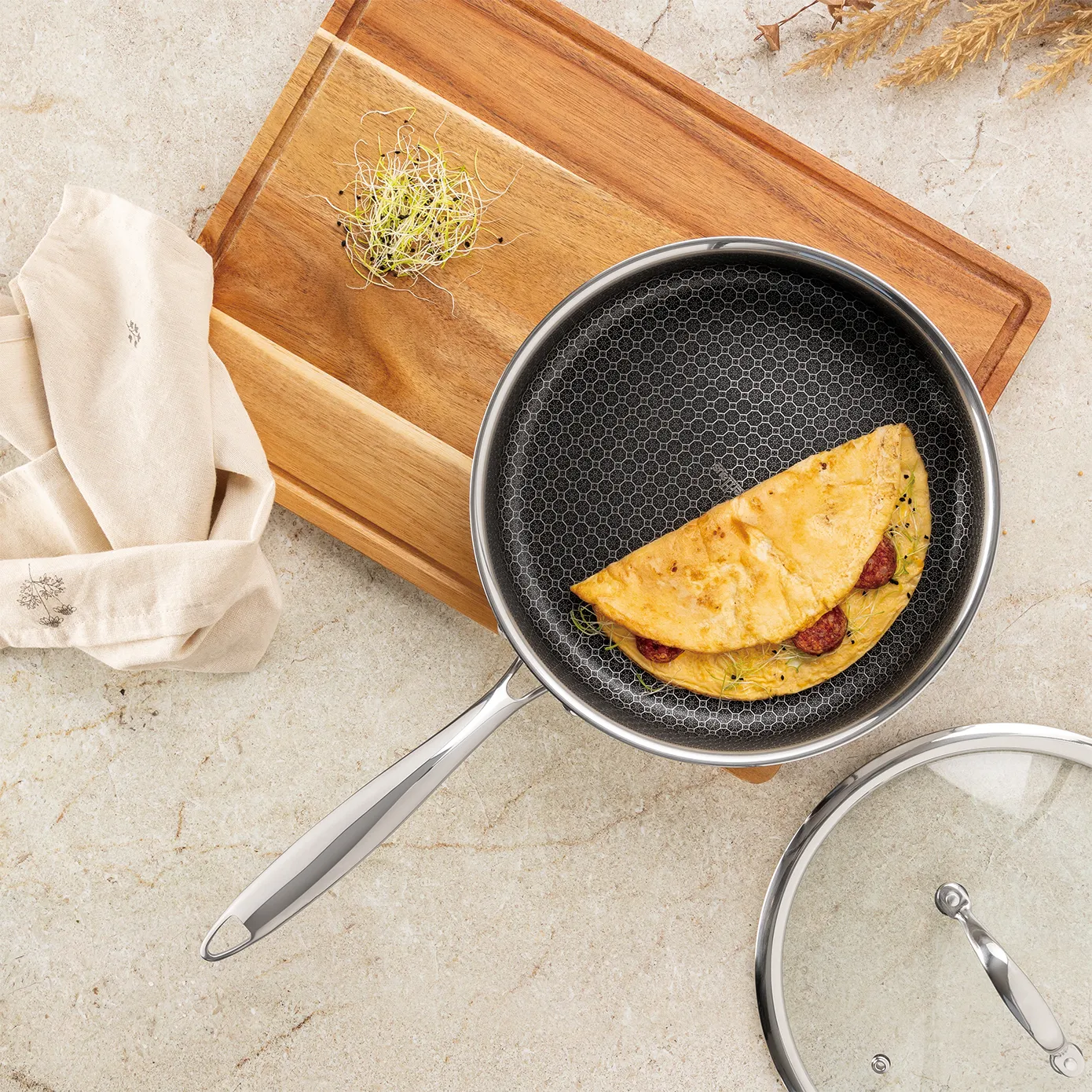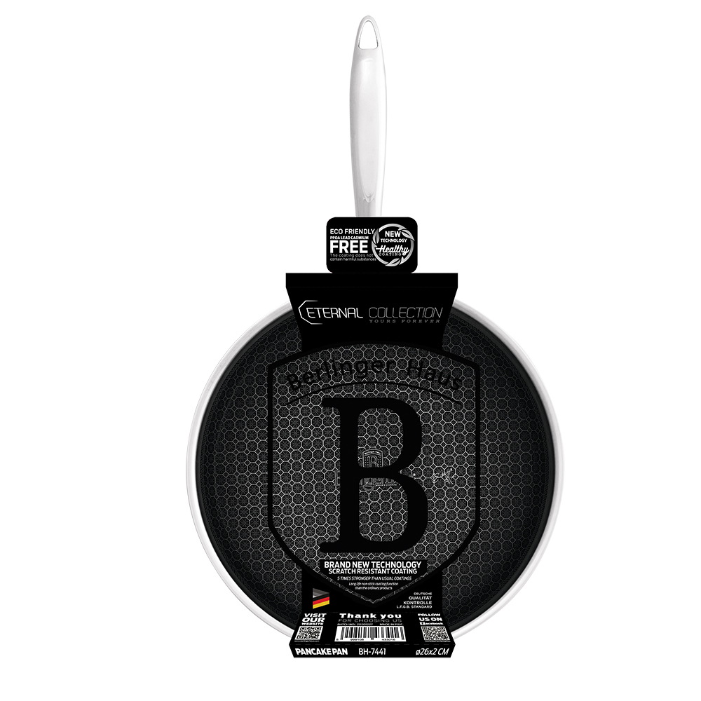 Eternal Collection to linia naczyń firmy BerlingerHaus z innowacyjną powłoką 3D. Korpusy naczyń wykonane są ze stali nierdzewnej 18/10. Posiadają 3 warstwowe dno akutermiczne doskonale gromadzące ciepło i równomiernie rozprowadzające je na całej powierzchni naczynia. Powłoka 3D naniesiona jest w postaci siatki o strukturze plastra miodu. Powłoka ta jest niezwykle trwała i odporna na zarysowania. Pozwala na smażenie i gotowanie z minimalną ilością tłuszczu. Potrawy nie przywierają nawet podczas smażenia w wysokiej temperaturze. Seria nadaje się do wszystkich rodzajów płyt - w tym gazowych, elektrycznych, ceramicznych, indukcyjnych. Powłoka jest pięciokrotnie twardsza od powłok teflonowych i granitowych. Dzięki temu naczynia będą służyć przez lata bez utraty swoich właściwości. Niewątpliwą zaletą jest łatwość ich czyszczenia. Naczynia można myć w zmywarce.