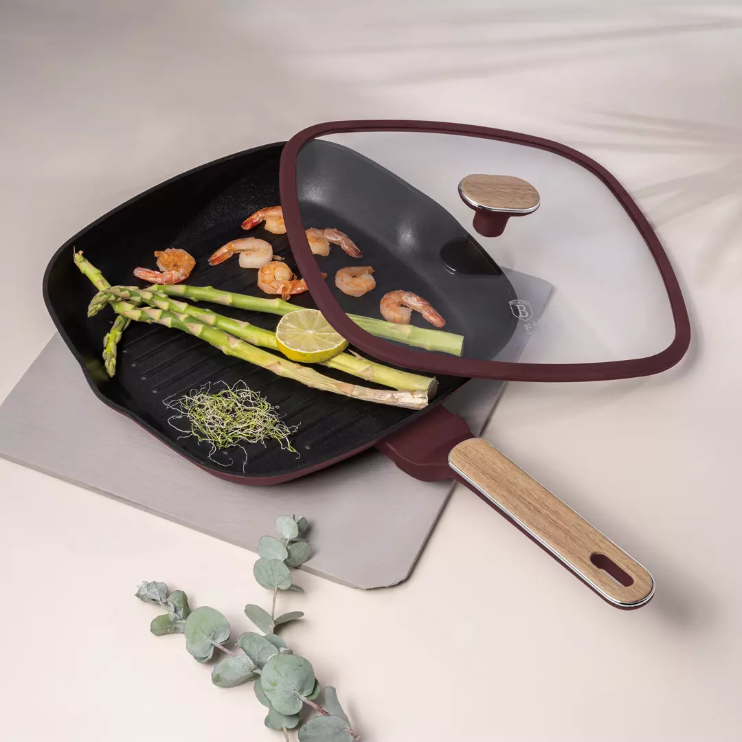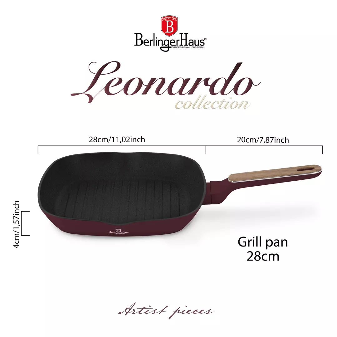 Patelnia grillowana BerlingerHaus Leonardo Nordic Collection wykonana została z wysokiej jakości kutego aluminium. Potrójna nieprzywierająca powłoka TytanPro posiada bardzo wysoki współczynnik odporności na uszkodzenia i zadrapania.