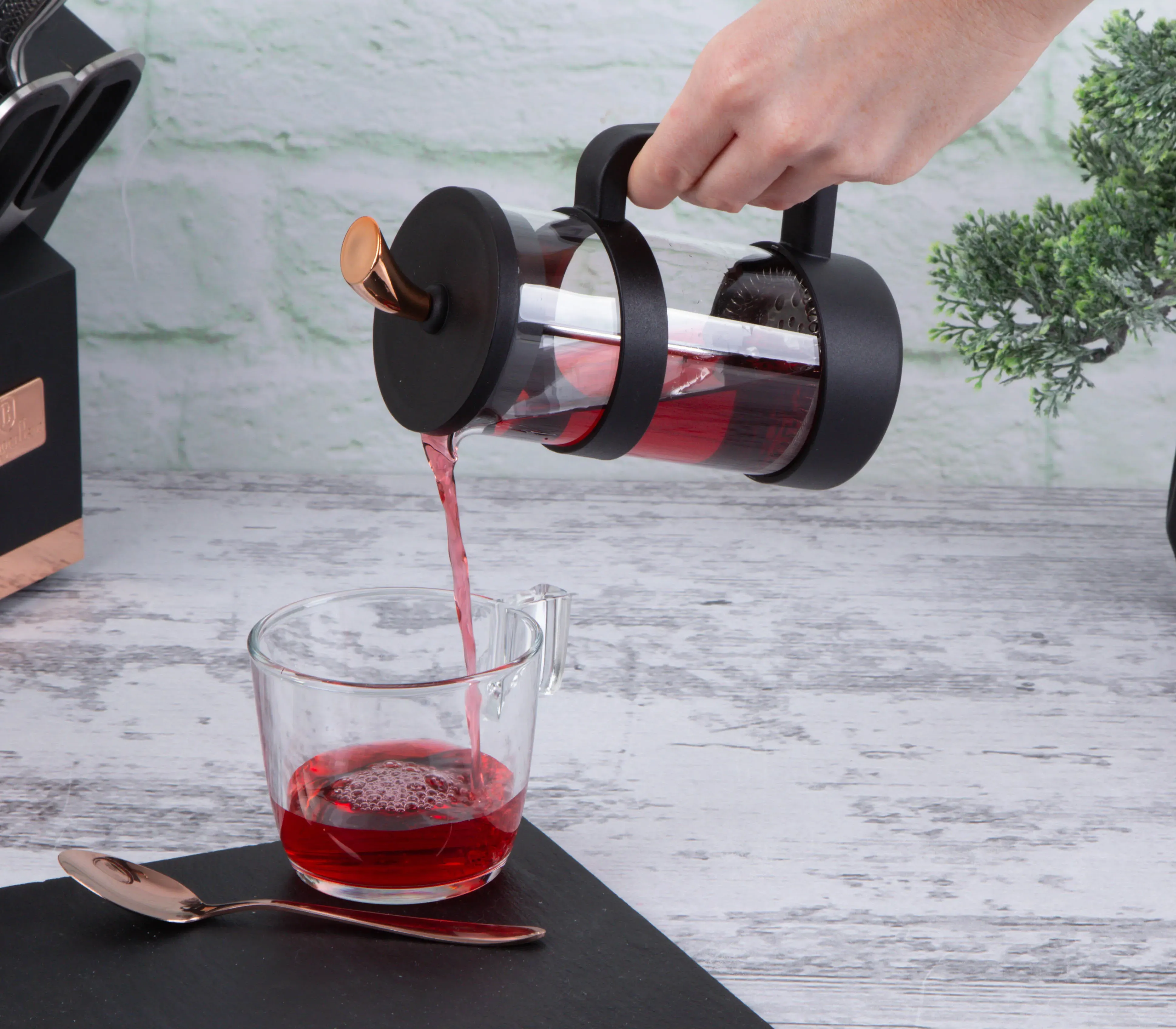 Stylowy i funkcjonalny zaparzacz do kawy i herbaty marki Berlinger Haus z kolekcji Black Rose.