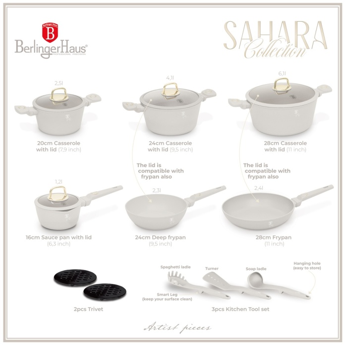 Zestaw 15 el. garnki, patelnie, akcesoria BerlingerHaus Sahara BH-8081