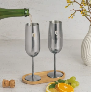 Zestaw 2 metalowych kieliszków do szampana – stal nierdzewna