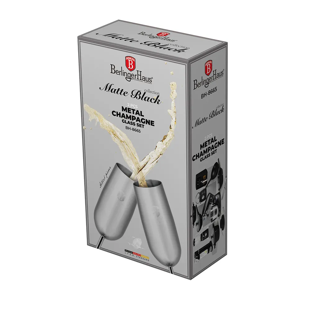Zestaw 2 metalowych kieliszków do szampana – stal nierdzewna BerlingerHaus BH-8665