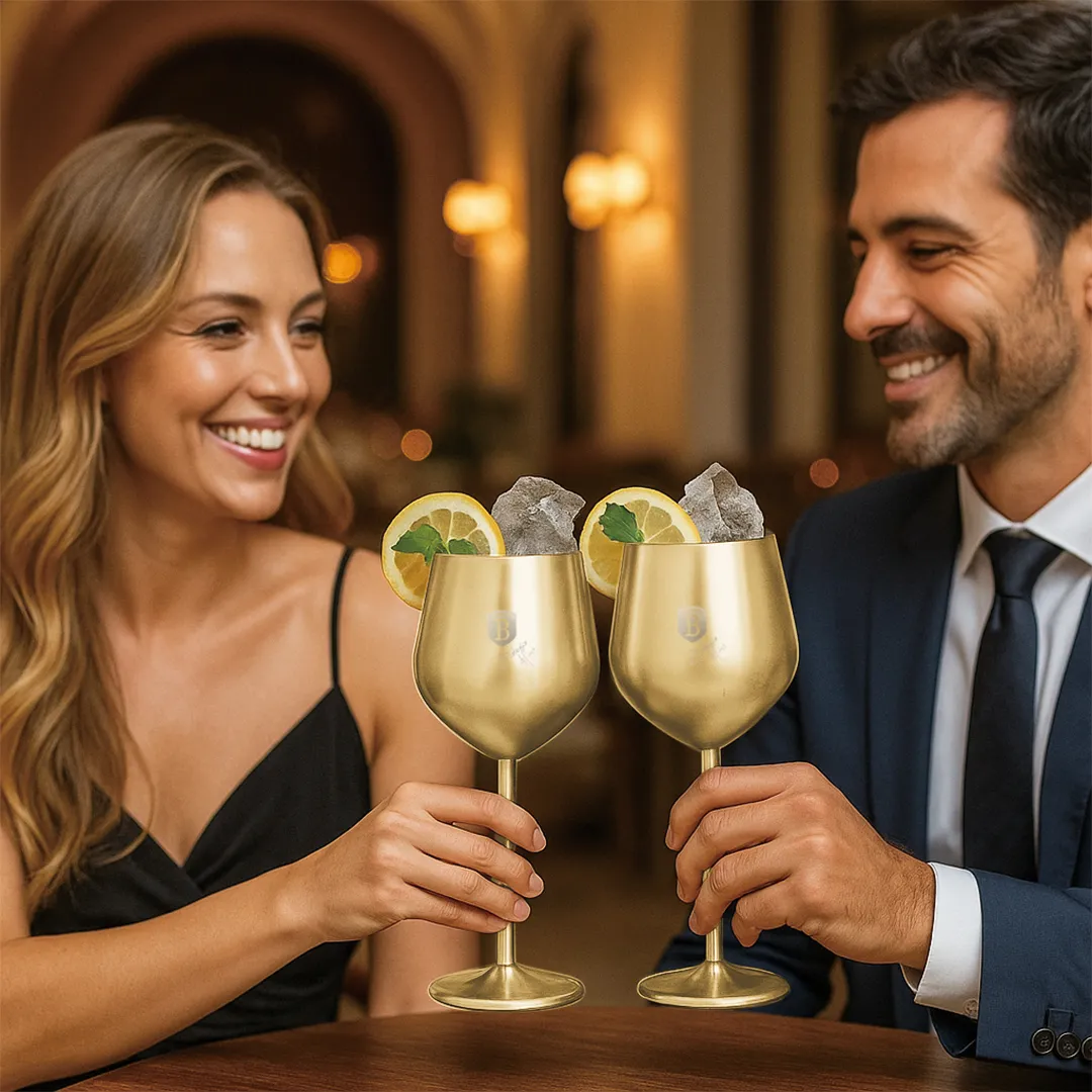 Zestaw 2 metalowych kieliszków do wina – stal nierdzewna