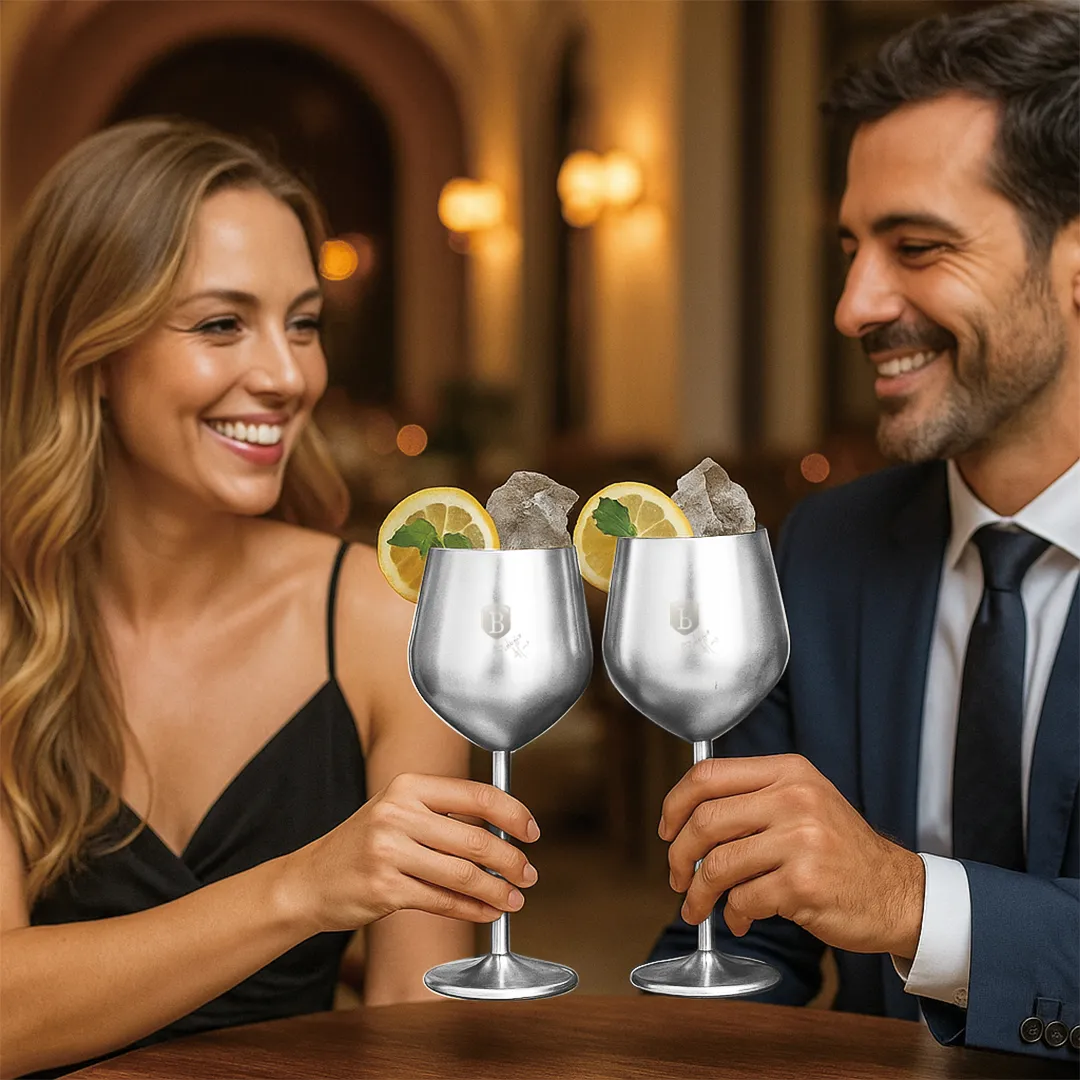 Zestaw 2 metalowych kieliszków do wina – stal nierdzewna BerlingerHaus BH-8661