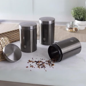 Wykonane ze stali nierdzewnej pojemniki marki Berlinger Haus, stanowią gwarancję jakości. Dzięki temu, możemy cieszyć się z zakupu przez bardzo długi czas. Łatwe zarówno w otwieraniu jak i zamykaniu. Komplet z kolekcji Metallic Line Carbon Edition pozwoli nam utrzymać porządek w kuchni i nadać jej charakteru.