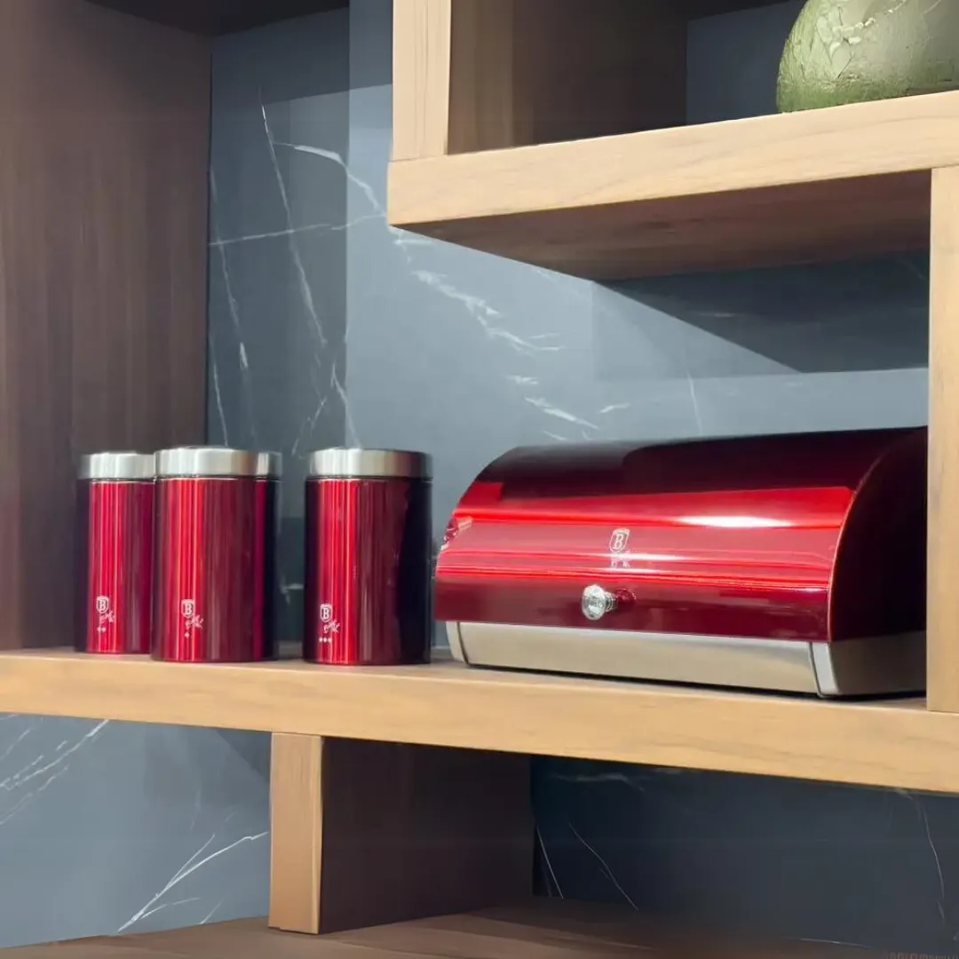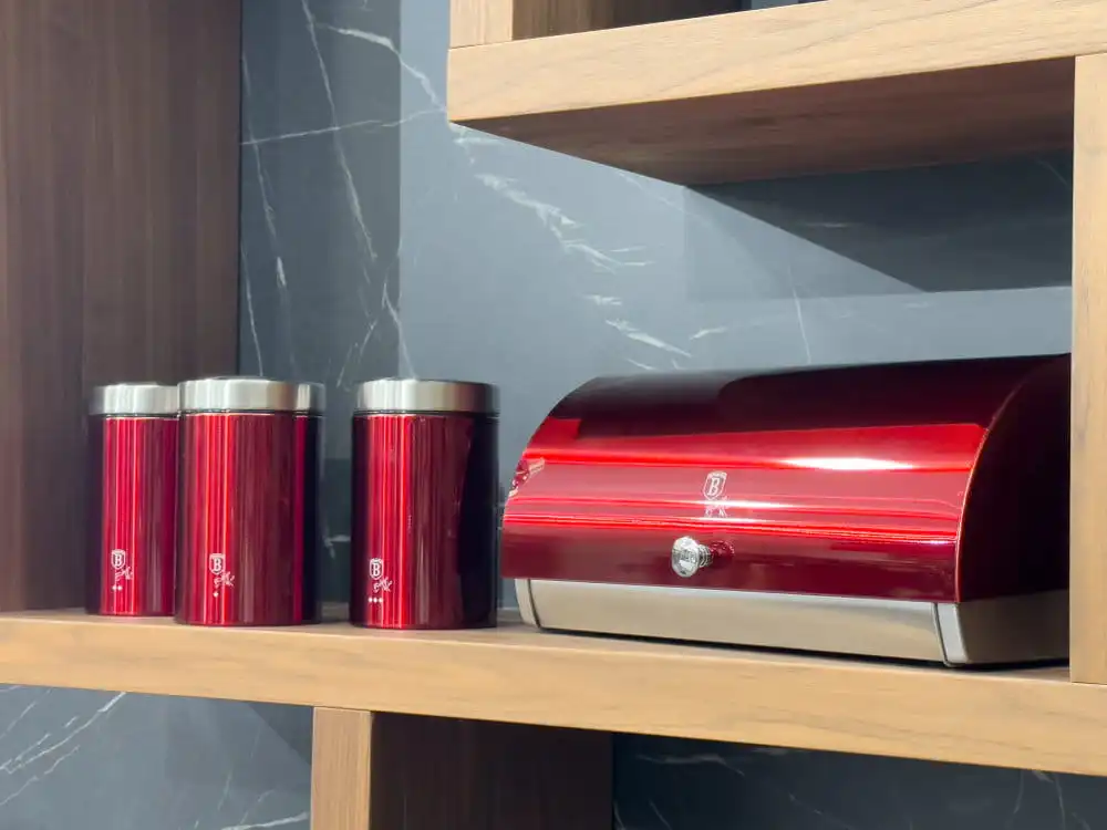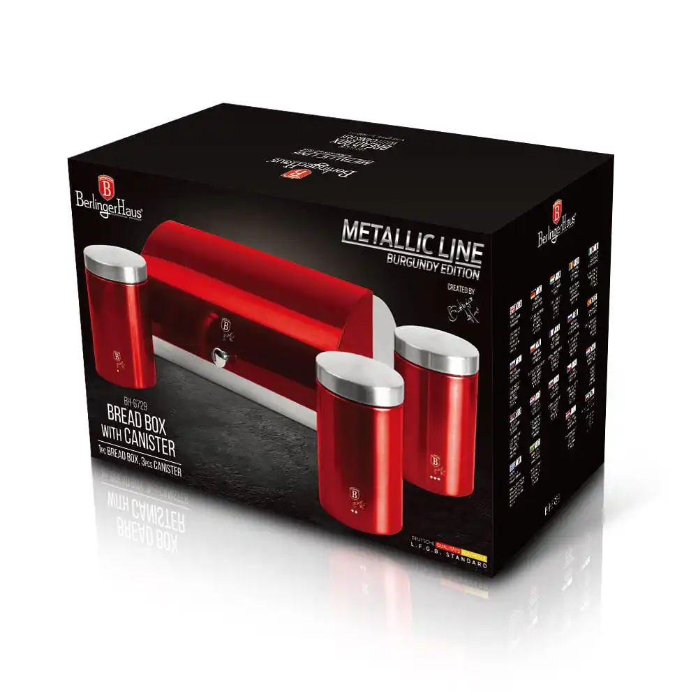 Zestaw 3 pojemników i chlebak Metallic Line Burgundy BerlingerHaus BH-6729