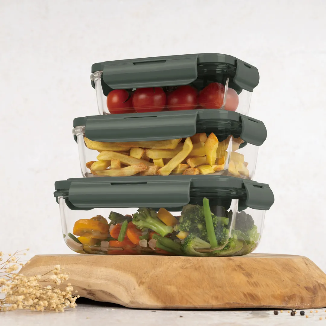 Praktyczny zestaw trzech pojemników na żywność wykonanych z wysokiej jakości szkła boro-krzemowego oraz trwałego plastiku i silikonu. Idealne do przechowywania, podgrzewania i przenoszenia jedzenia. Dzięki szczelnym pokrywkom potrawy pozostają dłużej świeże, a różne pojemności sprawiają, że zestaw sprawdzi się zarówno w domu, jak i w pracy czy szkole.