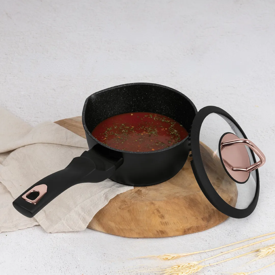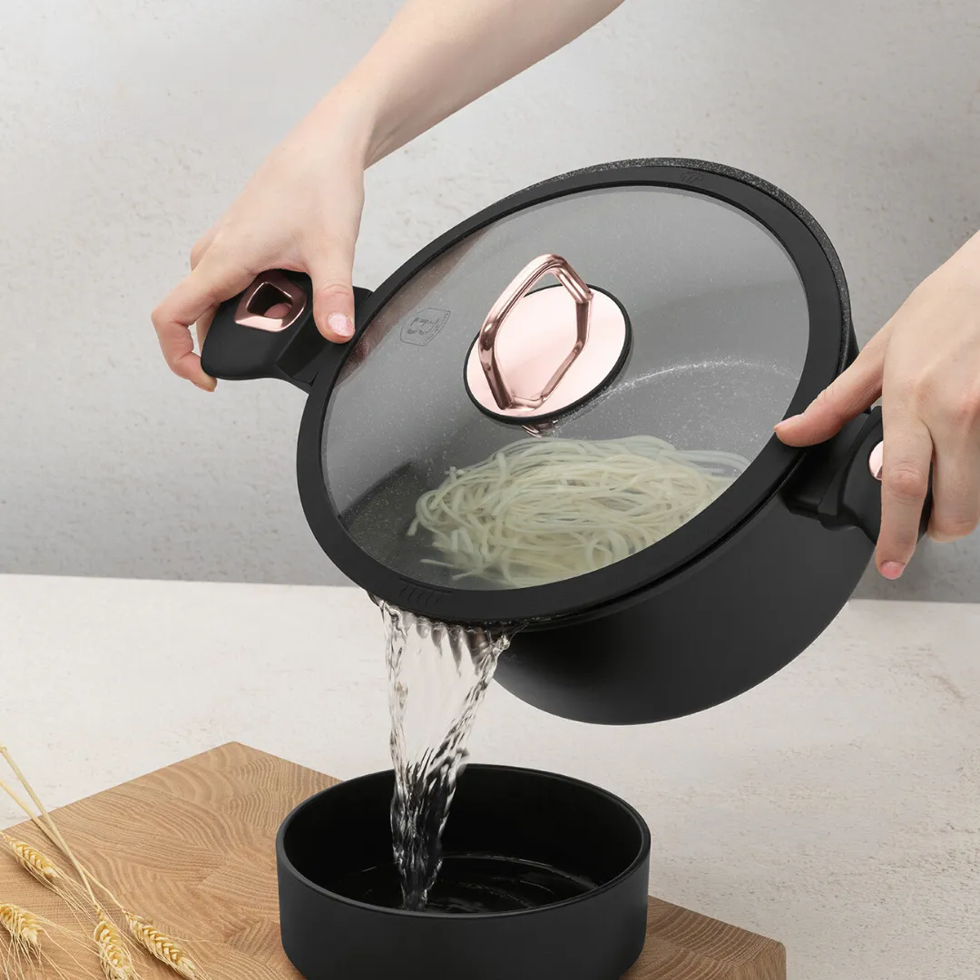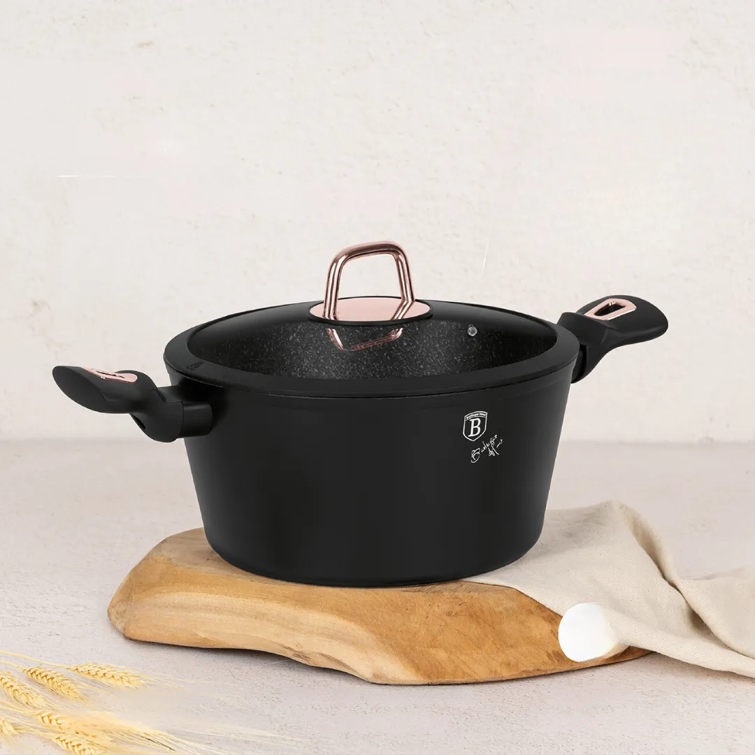 Naczynia kuchenne marki BerlingerHaus wykonane zostały z najwyższej jakości kutego aluminium, dzięki czemu otrzymujemy stabilny i solidny korpus.